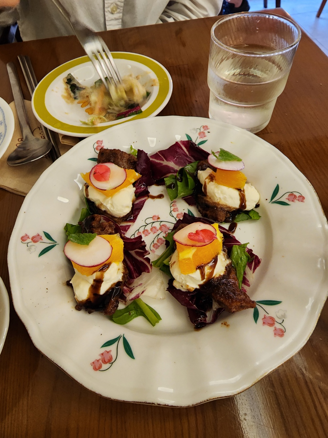 스테이크는 간이 좋았고 야채랑 크림치즈? 같은 거랑 같이 먹으니 맛있었으며 샐러드는 야채 양이랑 다르게 ㅋㅋ 드레싱을 많이 뿌려 주셔서 짭짤하게 먹었다.ㅎㅎ 참깨? 드레싱인가? 깨 종류 같았다(야채를 늘려주시면 좋을 것 같기도.. 헤헷)