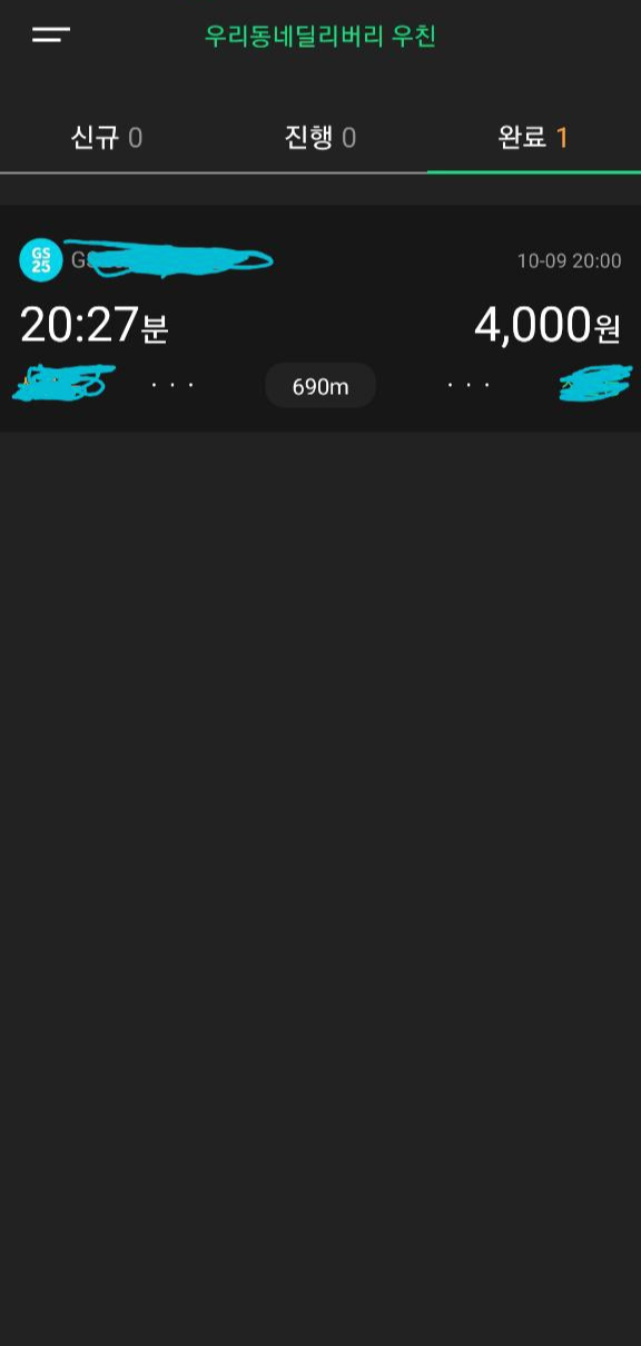우리동네딜리버리 우친은 GS편의점이 근처에 있다면 평일에 하루에 두세 번 뜨는 것 같고, 주말에는 더 많이 뜬다. 우리 집에서도 받을 수 있는 유일한 배달이다.