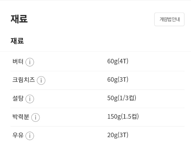그래서 요리 어플에서 크림치즈를 검색해 보았다. 쿠키 만드는 방법이 나와서 슥~보니 우리 집 냉장고 재료로 만들 수 있을 것 같았다.